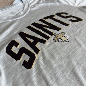 Nike New Orleans Saints T-shirt in white with black lettering. Features a fleur-de-lis logo.