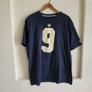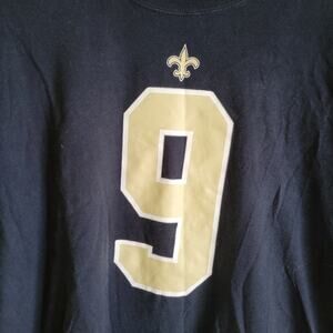 Nike Saints Tee Size: XXL Condition: Excellent Used Features: black, saints, drew Brees, NFL, logo, gold, new Orleans, crew neck, short sleeve, cotton