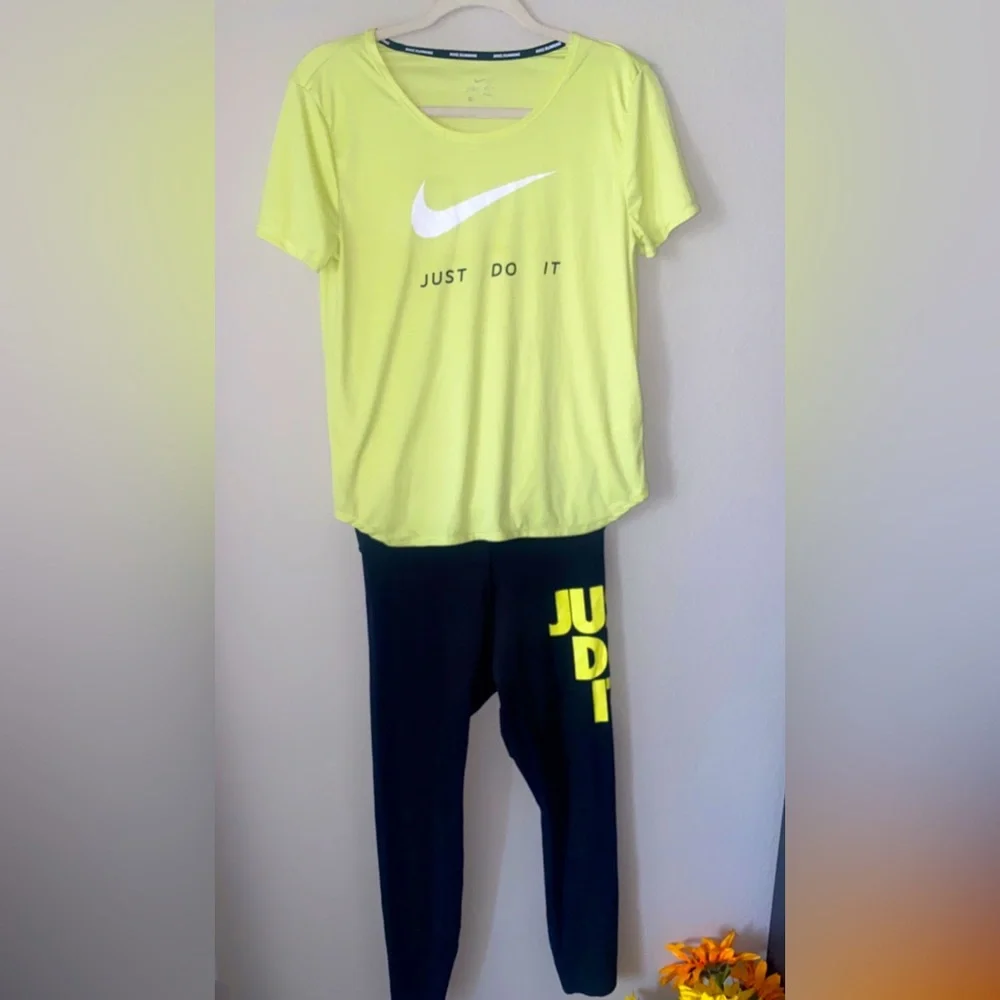 This is a neon green and black dry fit Nike sport set. It’s great for working out or casually running errands.
