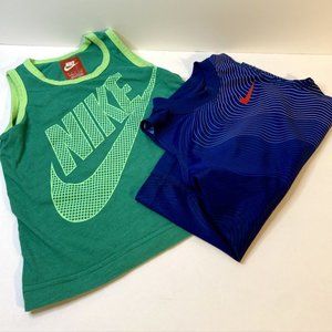 Nike Set of 2 Muscle Tanks Boys Size 3T Green Cotton Red White & Blue Dri-Fit