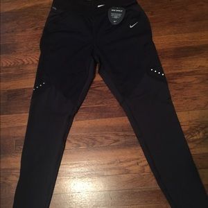 Selling Nike shield training workout pants. Received item as a gift but does not fit. It has never been worn and has original tags still attached. They have reflective Nike symbol, good for jogging at night. Really cute and comfy material.