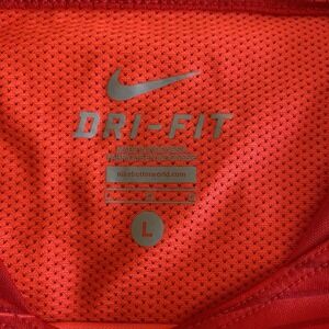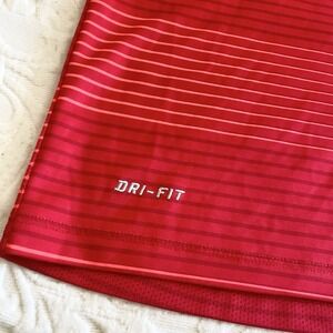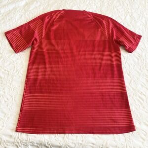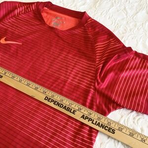 Nike Shirt Mens L Red Dri Fit Short Sleeve Soccer Striped Top Front Swish