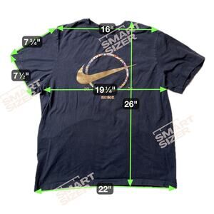 Approximate flat measurements: Chest (pit to pit): 22 inches, Length (shoulder to hem): 26 inches, Shoulders: 16 inches, Sleeve length: 7.5 inches
