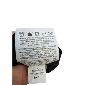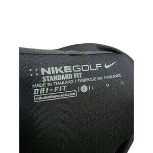 Pre-owned Nike Golf Black colorblock polo size L. Collared short sleeve with button neck. Swoosh logo on one sleeve and company logo on other sleeve.