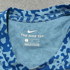 Nike Shirt Mens Large Cerulean Blue Contrast Just Do It Plaque Orange Geometric