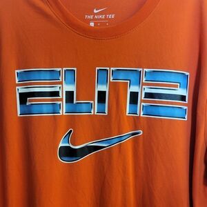 Nike Shirt Mens Large Orange / Blue Elite Long Sleeve Tee Dri Fit Swoosh
