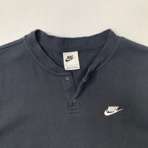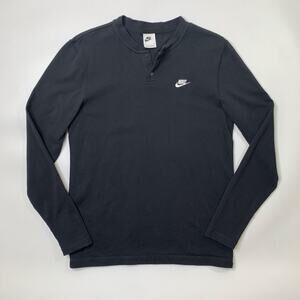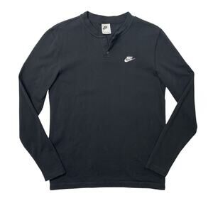 Nike Shirt Mens S Small Black Cotton Club Henley Long Sleeve Snap Button Tee