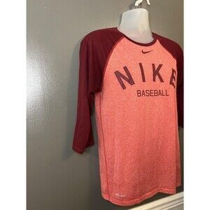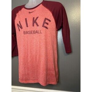 Nike Shirt Mens Small Red Maroon Dri-FIT Baseball 3/4 Sleeve Raglan Performance