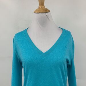 Nike Shirt Women S Small Peacock V Neck Regular Dri Fit Long Sleeve Pullover Tee