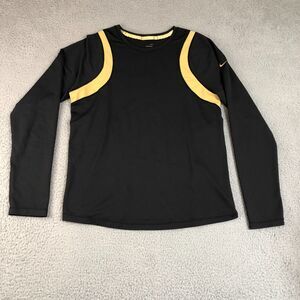 Nike Shirt Womens Medium Black Long Sleeve Logo Swoosh Pullover Crew Neck
