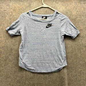 Nike Shirt Womens Medium Blue Short Sleeve Logo Athletic Tee Swoosh Heather Y2K