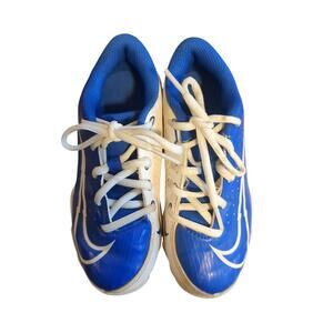 The Nike Vapor Ultrafly 4 Keystone Cleats in size 12C are designed for boys who play baseball or softball. These cleats feature a bold blue color with white accents, making them stylish and easily recognizable on the field. Made by Nike, a trusted brand in sports footwear, these cleats are durable and provide excellent traction for optimal performance on the playing field. Perfect for young athletes looking to elevate their game, these cleats are a must-have for any youth player.
