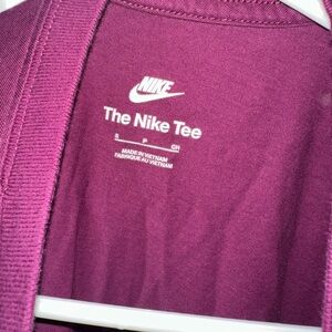 Elevate your casual wardrobe with this Nike purple short sleeve tee, featuring a classic crew neckline and a subtle white swoosh logo on the chest. Crafted from a smooth cotton-blend material, this shirt offers both comfort and style, making it a versatile choice for everyday wear. Its rich purple hue adds a vibrant touch to your outfit, embodying Nike's signature athletic-casual design.
