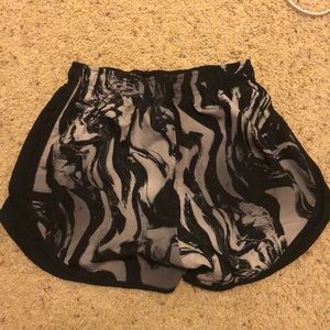 Black and gray swirl shorts with built in underwear and adjustable waist