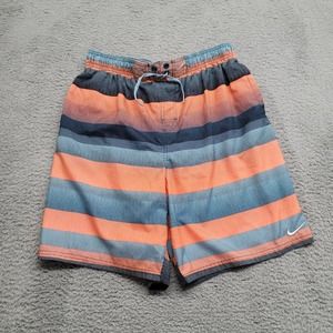 Nike Shorts Mens Large Blue Orange Striped Swim Trunks lined Beach Summer