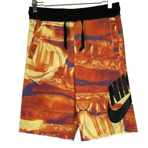 Nike Shorts Swoosh Organic Distortion Alumni Sweat Mens Size Small 9" Inseam