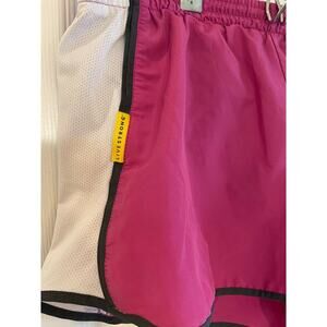 Nike Shorts Womens Large Purple Yellow Live Strong Lined Running Sz Large. Livestrong 4" Inseam. There is a snag highlighted in photo
