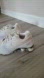 Nike Shox Deliver in white leather and metallic silver with original box. these sneakers have the iconic shox at the heel and the shoe laces have metallic tip piece. has some scuffs on toe area. due to natural aging of time (these are 2010) has some yellow/orange dried glue around the achilles.. the sneaker has uniformly changed color in specific areas into a beige cream color. some flaws in the sneaker around the shox area and the sole such as some cracking and separation, but all in all the sneakers are good. please look thoroughly through the pictures and ask me questions if you have any.