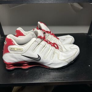 Nike Shox JX Sz 11 Leather White University Red Mens Running Sneakers 378341-110