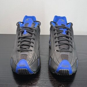 Dynamic sneakers with bold black and blue accents. Ideal for active lifestyles.