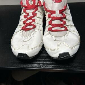 Nike Shox JX Sz 11 Leather White University Red Mens Running Sneakers 378341-110