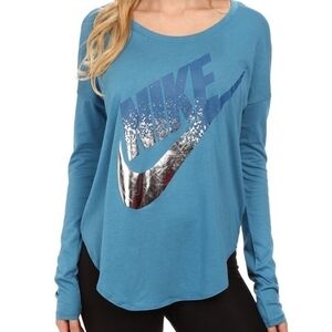 Nike Signal Long Sleeve Tee Medium Stratus Blue foil silver metallic t-shirt top
