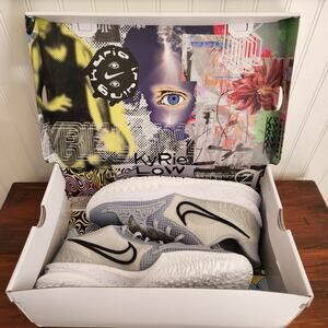 These Kyrie Low 4 TB Promo Wolf Grey/Black - Wolf Grey are a size 14.5M/16W. They are brand new and come in the original promo box, which is lined with amazing graphic art.