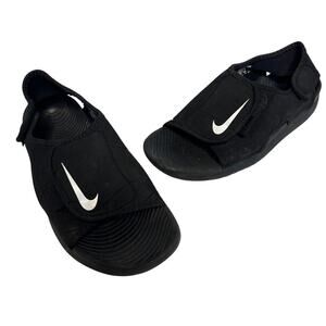 Nike Size Kid 6Y Kid Logo Sunray Adjust Sandal Flip Flop Black Hook Loop Closure