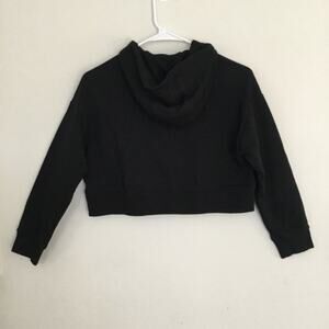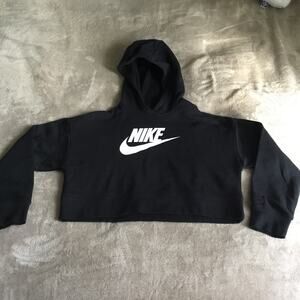Nike Size M Black With White Logo Boxy Cropped Hooded Sweatshirt Junior