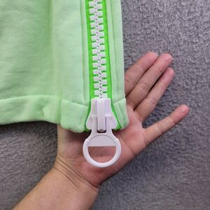 Features: Terry material, maxi length, oversized side zip, elastic waistband. No pockets.