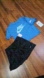 Sky blue Nike tee with bold logo. Black shorts with iconic swoosh.
