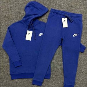 Nike tracksuit in sky blue. Features sleek black accents and logo. Comfortable and stylish.