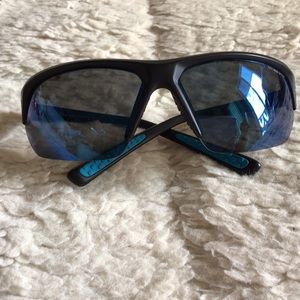 Very good condition. Bold turquoise blue and black sport frame with Nike signature and made in Italy. Ready to go - comes with case. Minor wear. Adapts to any light conditions, features a lightweight sport-wrap frame design, secure-wrap temple arms and a ventilated nose bridge. These active sport sunglasses— ideal for golf, running, tennis, cycling and provide 100 percent UVA and UVB protection.