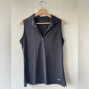 Nike Sleeveless Golf Polo Shirt - Dri-Fit Technology, Black, Collar - Size Large
