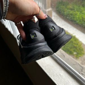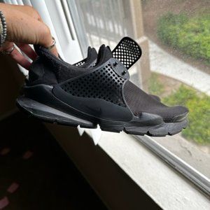 Black Nike slip-on sneakers with adjustable strap for tightness of shoes in a size 5.5 youth - fits like a 6.5/7 womens! I typically wear a 6.5 and they fit perfectly. Bought kids because they were cheaper, but my thrifty ladies already get it! ;)