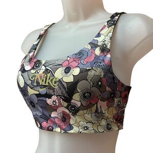 Nike Small Swoosh Sports Bra Floral Print Strappy Dri Fit Medium Support