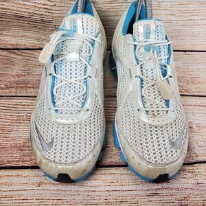 Nike Sneakers Silver Blue Mesh Zoom Air Hot Shot Dynamic Heel Running Women's 8. Some wear and a bit dirty but overall in good condition. Please inspect pics before purchasing. Ships in padded pack.