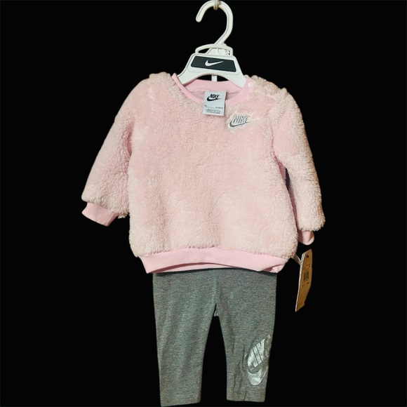 Nike Soft Pink Fleece Set with Gray Leggings