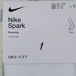 Nike Spark Cushioned Running Crew Socks Women 7.5-9 Men 6-7.5 Reflective 2 Pair