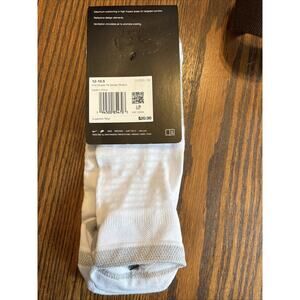 The Nike Spark Running Cushioned Dri Fit No Show Men's Socks in size 12-13.5 are designed for athletic use, featuring a solid white color and cushioned for comfort. Made of polyester, nylon, and spandex, these socks offer a no-show design and are ideal for all seasons. With a big and tall size fit, these socks are perfect for men looking for quality athletic socks from a trusted brand like Nike.