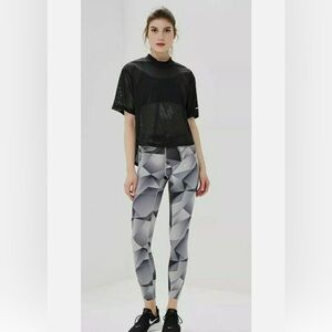 Experience the perfect blend of style and comfort with these Nike leggings, featuring a sleek black and gray design. Crafted from a stretchy athletic material, they offer a form-fitting silhouette ideal for both workouts and casual wear. The high-waisted fit ensures a flattering look while providing excellent support.