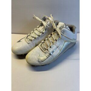 Nike speed lacks dynamic fit white lacrosse cleats. These are in used condition. They’ve been hand washed air dried pretreated with shout. There are some spots around the shoe and a little discoloring overall great condition no rips or holes laces are good. Bottom tread is good. No box as is.