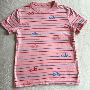 Nike Spellout pink red blue striped short sleeve crewneck baby tee shirt small