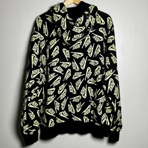 Nike Sport Black Yellow Volt Allover Print Pullover Hoodie Sz Large
