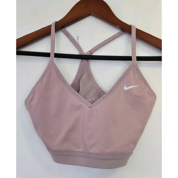 Nike Sports Bra Womens M Dri-Fit Padded Pink Light-Support V-Neck Athletic