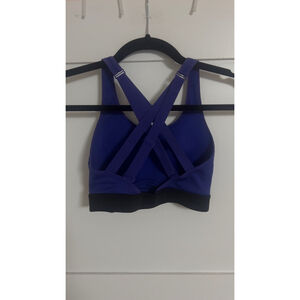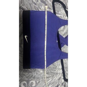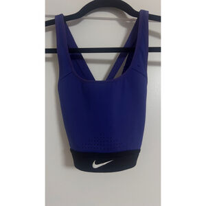 Dri-FIT - Elevate your training sessions with this bold and supportive Nike sports bra-meets-cropped-tank. Featuring a deep purple body with a contrasting black elastic band and iconic white Swoosh, this piece combines fashion and function. The crisscross back straps offer extra support and adjustable comfort, while laser-cut ventilation details enhance breathability.