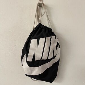 Nike Sportswear Black White Oversized Logo Swoosh Drawstring Bag Tote