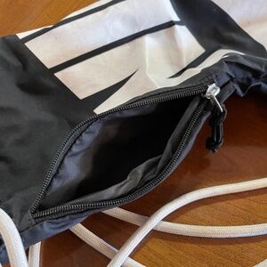 Nike Sportswear Black White Oversized Logo Swoosh Drawstring Zipper Bag Tote