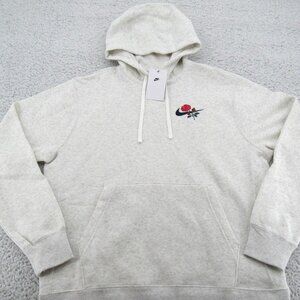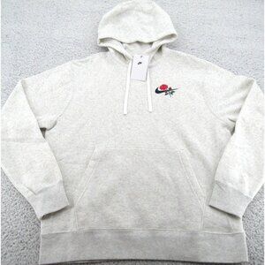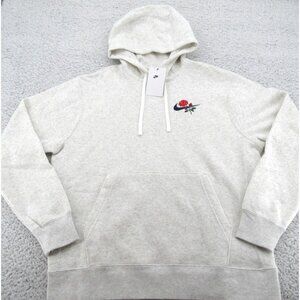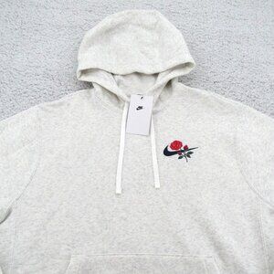 Nike Sportswear Club Fleece Hoodie Birch Heather W/ Embroidered Floral Rose Swoosh Logo