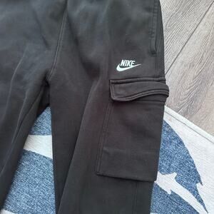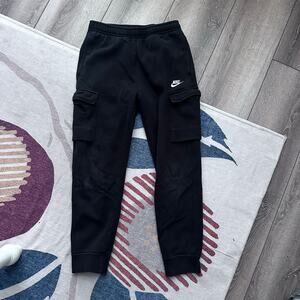 Elevate your casual wardrobe with these Nike Sportswear Club Fleece Cargo Pants! These athletic black cargo pants are perfect for everyday wear and offer a comfortable fit.